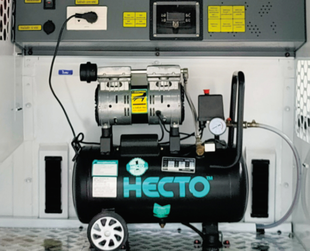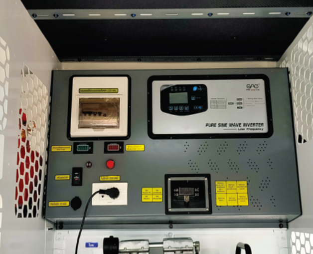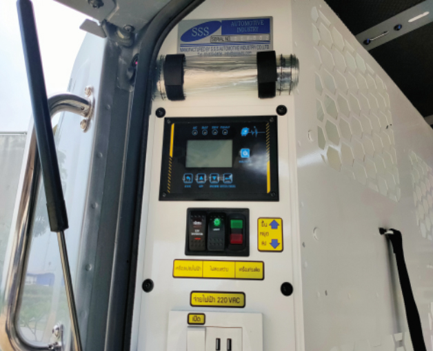 แผงควบคุมการทำงาน ประกอบด้วย Inverter Remote Control Panel สวิตช์์ต่างๆ เต้ารับปลั๊กไฟ และจุดจ่ายลม